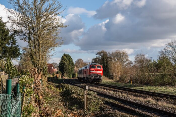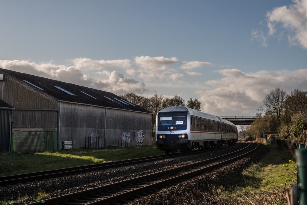 Aufgrund von Fahrzeugmangel auf dem RE10 NRW ist bis in die letzte Märzwoche 2026 eine Ersatzgarnitur mit Baureihe 218 und Silberlingen von TRI unterwegs. Das letzte Bild ist aufgenommen am 26.03.2026 um 19 Uhr wie alle anderen Bilder auch bei Aldekerk